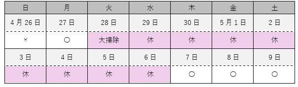 ゴールデンウィーク休業のお知らせ