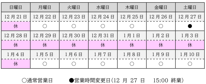 年始は 1月5日から通常営業となります。(※1月10日の土曜日は営業致します)